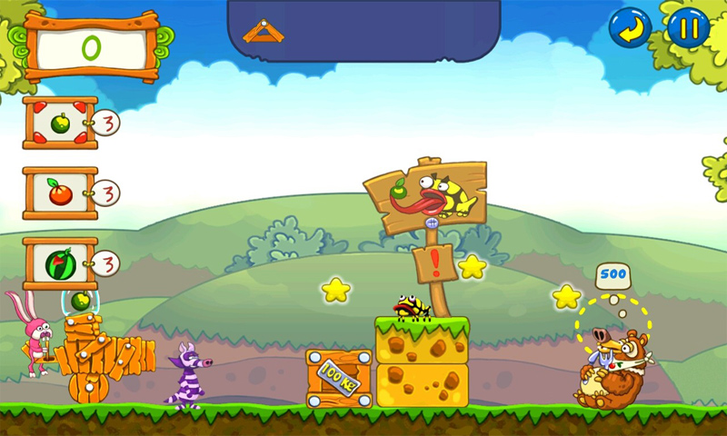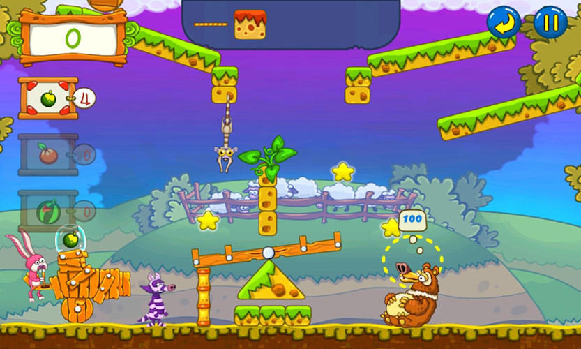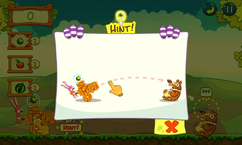 Mighty King Bear is lazy. Too lazy to hunt, too lazy to get his own food. Instead, he bullies the other forest creatures into feeding him their food. Of course, you don’t want to get too close to him, in case you end up on the menu. So instead you fire the fruit straight into his giant jaws using a makeshift cannon. That’s not as simple as it sounds, given all the obstacles in the way. But using movable objects and a variety of helpful animals, you can always find a way of feeding King Bear. You’ll get help from the chameleon’s long tongue, swinging monkeys and spiky hedgehogs. And each fruit behaves differently in flight – so getting a whole melon into the King’s mouth is a mighty feat. Challenging physics-based gameplay and riotous humour means that once you’ve played Feed the Bear, you can’t bear to be without it!