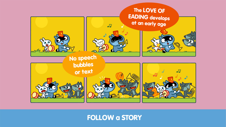 Dive into the MAGIC of reading PANGO COMICS helps children from 3 years old read stories "all by themselves". FOLLOW the story without speech bubbles or text, and LAUGH at gentle and funny twists. Big square boxes, clean and simple layouts, and a fluid narration to get familiar with the MAGIC of reading. Through delicious adventures, Pango stimulates your IMAGINATION! 48 easy stories to discover for FUN ! "Have some time to share? Join your child in their reading, reverse the roles and ask them to read you a story . With each word they choose, your child GROWS!" PANGO COMICS, the fun in READING like a GROWN-UP ! FEATURES - 48 stories to READ for FUN - More than 288 pages - AUTONOMOUS reading - FUNNY and FESTIVE universe - Perfect for children 3 or older - A simple, functional application - Internal parental control - No in-game purchases and no invasive advertising