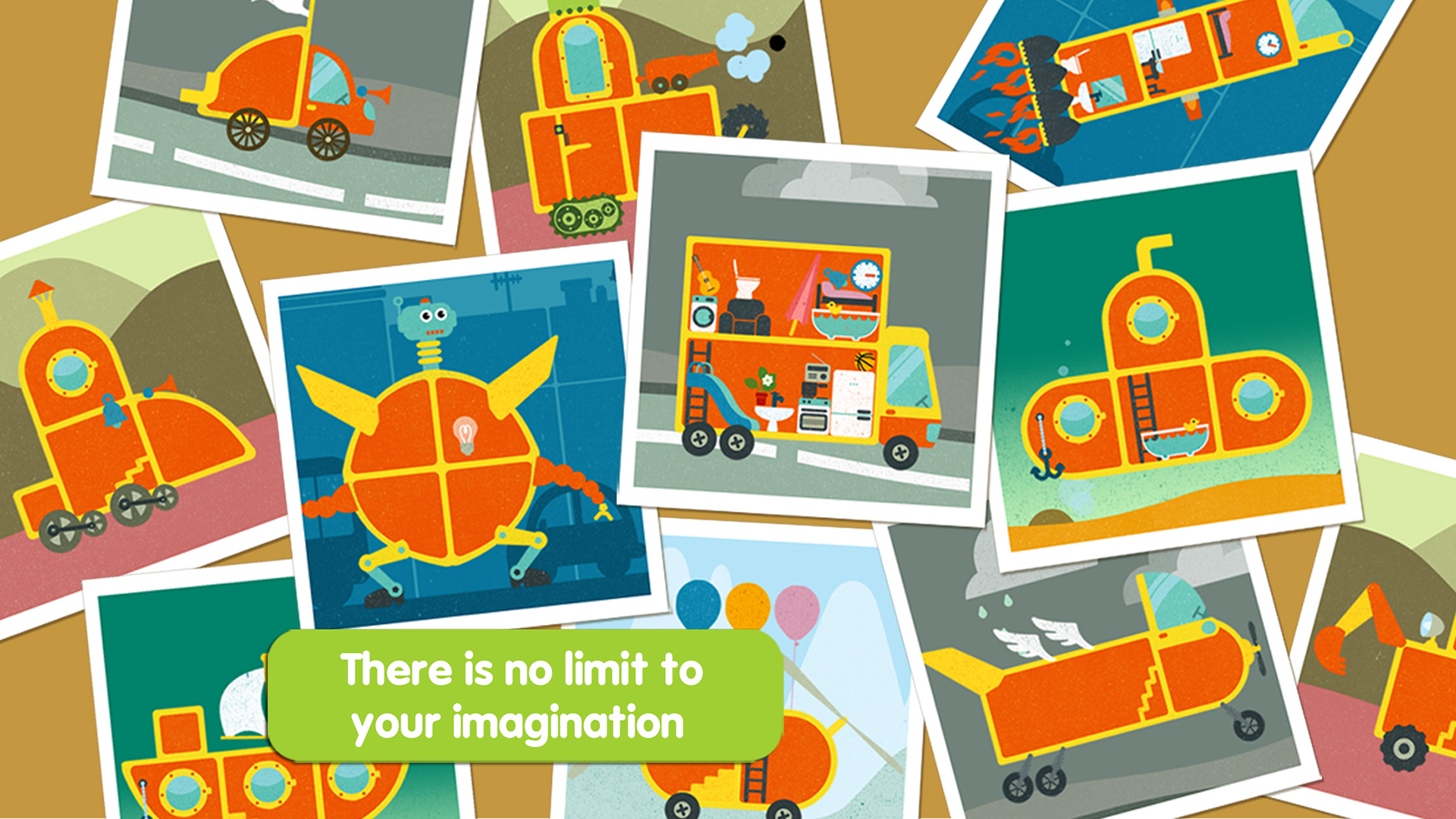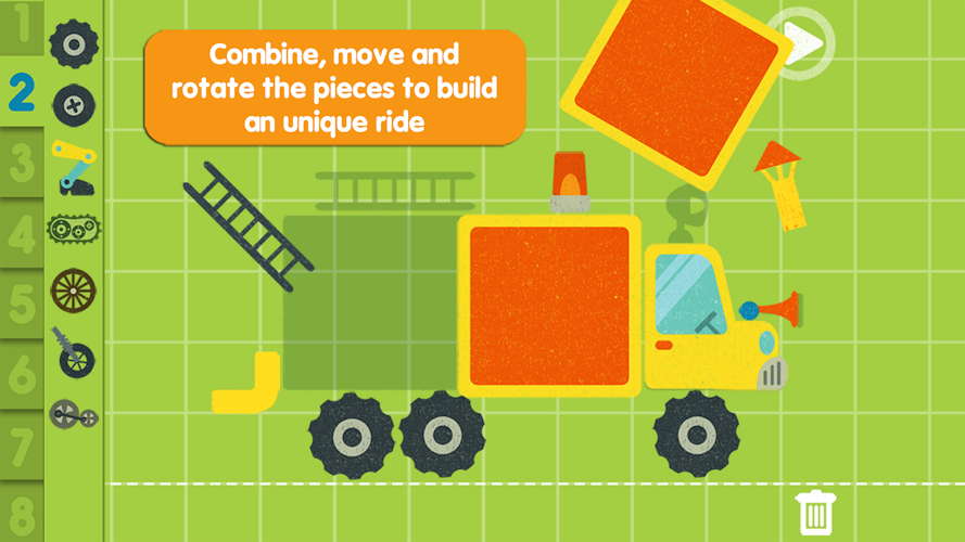 Design and build your dream car ! You've always wanted to build a flying car, a robot tank, or a rolling house... Thanks to Pango's Imaginary Car, give total freedom to your creative imagination, it's easy! Choose between fifty different objects: a tractor wheel, a fridge, a truck horn, rocket engines ... Combine them and create the car of your dreams. There is no limit to your imagination. You can also build from existing templates such as a fire truck, helicopter, or a robot submarine ... Once your creation ready, you can play with it, interact PANGO with different objects, change the backgrounds. It moves, it flies, it rolls ... have fun and find out what your imaginary car is capable of. If you are happy with the result, take a photo and share it with your friends.