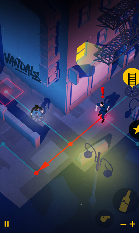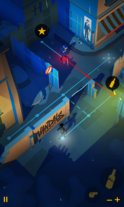 Vandals is an infiltration game that will transport you to the most emblematic cities of street art. In this turn-based game, the aim is to sneak around police surveillance and spray walls that grow harder and harder to access. From Paris to Tokyo, via São Paulo, Berlin and New York, follow in the wake of ultra-famous street artists like Blek Le Rat and Keith Haring. With Vandals, you can bomb your alias on the walls of New York like Lady Pink, paint childlike characters like Keith Haring, or get inspired by the poems of Miss.Tic and write your own. After Type:Rider, Vandals is the new project by Cosmografik. It is a video game published and co-produced by ARTE - the European cultural TV and digital channel - and Ex Nihilo. It was developed in partnership with Novelab. It is easy to learn, and the puzzles promise hours of immersion and pleasure. • Share your most awesome creations on social networks • Rock to the rhythm of an original soundtrack: headphones recommended! • Play in portrait or landscape mode. Left-handed / right-handed option The game includes: • 60 puzzles to solve • 5 cities with original graphical worlds • 40 backgrounders on the evolution of street art since the 1960s • 18 achievements to unlock